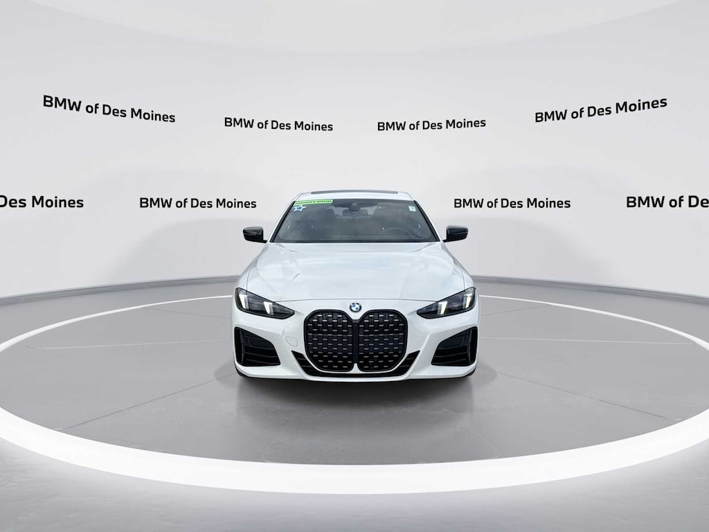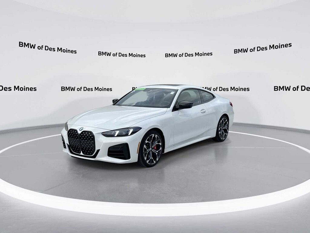 M SPORT PACKAGE Shadowline Exterior Trim, Black Mirror Caps, Aluminum Rhombicle Anthracite Trim, M Steering Wheel, Rear Spoiler, Wheels: 19 x 8 M Dual-Spoke Bicolor, Style 995M, Tires: 225/40R19 All Season, M Sport Package (337), Without Lines Designation Outside, Aerodynamic Kit, SHADOWLINE PACKAGE M Sport Package Pro, Full LED Headlights w/Laserlight Taillights, Extended Shadowline Trim, M Shadowline Lights, PREMIUM PACKAGE Remote Engine Start, Power Tailgate, Comfort Access Keyless Entry, BMW Curved Display w/HUD, Heated Steering Wheel, PARKING ASSISTANCE PACKAGE Active Park Distance Control, Surround View w/3D View, Provides a 360-degree view around the vehicle in parking situations, Rear View Camera, Parking Assistant Plus. BMW 430i xDrive with Alpine White exterior and Black interior features a 4 Cylinder Engine with 255 HP at 5000 RPM*.