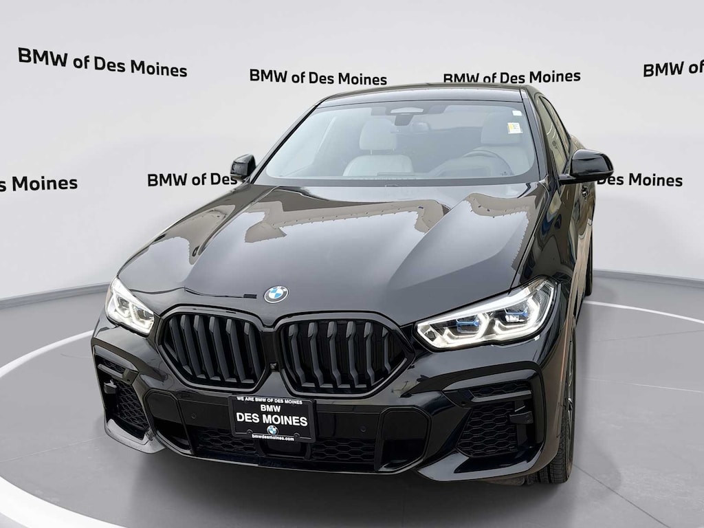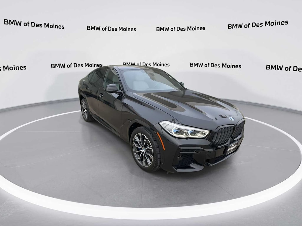 X6 xDrive40i is nicely equipped with Climate Comfort Package (4-Zone Automatic Climate Control, Front & Rear Heated Seats, and Heated Front Seats Armrests & Steering Wheel), Connected Package Pro, Driving Assistance Professional Package (Active Driving Assistant Pro and Extended Traffic Jam Assistant), Executive Package (Head-Up Display, Icon Adaptive LED Headlights w/Laserlight, Panoramic Sky Lounge LED Roof, Rear Manual Side Window Shades, Remote Engine Start, WiFi Hotspot, and Wireless Charging), M Sport Package (Adaptive M Suspension, Aerodynamic Kit, M Sport Exhaust System, M Steering Wheel, Shadowline Exterior Trim, Wheels: 20 x 9 M Star-Spoke Bi-Color (Style 740M), and Without Lines Designation Outside), M Sport Package (337), Parking Assistance Package (DISC) (Active Park Distance Control, Drive Recorder, Parking Assistant Plus, Rear-View Camera, and Surround View w/3D View), Shadowline Package (Extended Shadowline Trim and Illuminated Kidney Grille), Silverstone Silverstone Sensafin, 10 Speakers, 3.39 Axle Ratio, 4-Wheel Disc Brakes, ABS brakes, Air Conditioning, Alloy wheels, AM/FM radio: SiriusXM with 360L, AM/FM Stereo, Apple CarPlay & Android Auto Compatibility, Auto High-beam Headlights, Auto-dimming door mirrors, Auto-dimming Rear-View mirror, Automatic temperature control, BMW Assist eCall, BMW TeleServices, Brake assist, Bumpers: body-color, Compass, ConnectedDrive Services, Delay-off headlights, Driver door bin, Driver vanity mirror, Dual front impact airbags, Dual front side impact airbags, Electronic Stability Control, Emergency communication system: BMW Assist eCall, Enhanced USB & Bluetooth Plus Smartphone Integration, Exterior Parking Camera Rear, Four wheel independent suspension, Front anti-roll bar, Front Bucket Seats, Front Center Armrest, Front dual zone A/C, Front reading lights, Fully automatic headlights, Garage door transmitter, Genuine wood console insert, Genuine wood dashboard insert, Genuine wood door panel insert, Glass Controls (DISC), harman/kardon Surround Sound System, Head restraints memory, Heated door mirrors, Heated Front Seats, Heated front seats, Hi-Fi Sound System, Illuminated entry, Leather Shift Knob, Leather steering wheel, Live Cockpit Pro w/Navigation, Low tire pressure warning, Lumbar Support, M Sport Brakes w/Blue Calipers, Memory seat, Multi-Contour Seats, Navigation System, Occupant sensing airbag, Outside temperature display, Overhead airbag, Overhead console, Panic alarm, Passenger door bin, Passenger vanity mirror, Power adjustable front head restraints, Power door mirrors, Power driver seat, Power Front Seats, Power Liftgate, Power moonroof, Power passenger seat, Power steering, Power windows, Radio data system, Rain sensing wipers, Rear anti-roll bar, Rear reading lights, Rear seat center armrest, Rear window defroster, Remote keyless entry, Security system, Sensafin Upholstery, SiriusXM Satellite Radio w/1 Year Subscription, Speed control, Speed-sensing steering, Speed-Sensitive Wipers, Split folding rear seat, Spoiler, Sport Seats, Sport steering wheel, Steering wheel memory, Steering wheel mounted A/C controls, Steering wheel mounted audio controls, Tachometer, Telescoping steering wheel, Tilt steering wheel, Traction control, Trailer Hitch, Trip computer, Turn signal indicator mirrors, Variably intermittent wipers, and Wheels: 20 x 9 V-Spoke (Style 738) Recent Arrival!