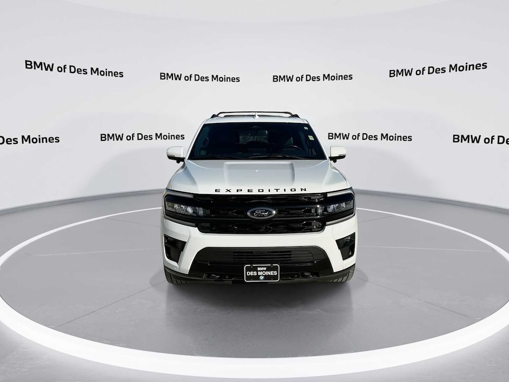 Expedition Limited is nicely equipped with Stealth Edition Package (Black Headlamp and Fog Lamp Bezels, Black Rear Bumper, Black Roof Rack Side Rails, Body Color Door Handles, Ebony Black Power Deployable Running Boards, Ebony Black Tailgate Applique, Ebony Black Twin Spar Grille, Heated/Ventilated Lthr Front Captains Chairs (A), LED Taillamp w/Black Bezels, Sport-Tuned Suspension, and Wheels: 22 Premium Black-Painted Aluminum), Equipment Group 303A Stealth Package (1st & 2nd Row Floor Mats w/Logo, Panoramic Vista Roof, and Power-Folding Sideview Mirrors w/Autofold), Heavy-Duty Trailer Tow Package (360-Degree Camera w/Trailer Reverse Guidance, Integrated Trailer Brake Controller, and Pro Trailer Backup Assist), 4WD, 12 Speakers, 15.5 LCD Capacitive Touchscreen, 1st & 2nd Row Floor Liners w/Carpet Mats, 360-Degree Camera w/Split View, 3rd row seats: split-bench, 4-Wheel Disc Brakes, ABS brakes, Active Park Assist 2.0, Adjustable pedals, Advanced Cargo Manager, Air Conditioning, Alloy wheels, AM/FM radio: SiriusXM with 360L, Auto High-beam Headlights, Auto-dimming door mirrors, Auto-dimming Rear-View mirror, Automatic temperature control, Brake assist, Bumpers: body-color, Compass, Delay-off headlights, Driver door bin, Driver vanity mirror, Dual front impact airbags, Dual front side impact airbags, Electronic Stability Control, Emergency communication system: SYNC 4 911 Assist, Exterior Parking Camera Rear, Four wheel independent suspension, Front anti-roll bar, Front Bucket Seats, Front Center Armrest, Front dual zone A/C, Front fog lights, Front reading lights, Fully automatic headlights, Garage door transmitter, Heated & Ventilated Leather Front Captains Chairs, Heated door mirrors, Heated front seats, Heated rear seats, Heated steering wheel, Illuminated entry, Instrument Panel Cluster, Leather steering wheel, Low tire pressure warning, Memory seat, Navigation system: Connected Navigation, Occupant sensing airbag, Outside temperature display, Overhead airbag, Overhead console, Panic alarm, Passenger door bin, Passenger vanity mirror, Pedal memory, Power door mirrors, Power driver seat, Power Liftgate, Power moonroof, Power passenger seat, Power steering, Power windows, Radio data system, Radio: B&O Sound System by Bang & Olufsen, Rain sensing wipers, Rear air conditioning, Rear anti-roll bar, Rear reading lights, Rear window defroster, Rear window wiper, Reclining 3rd row seat, Remote keyless entry, Reverse Brake Assist, Security system, SiriusXM w/360L, Speed control, Speed-sensing steering, Speed-Sensitive Wipers, Split folding rear seat, Spoiler, Steering wheel memory, Steering wheel mounted audio controls, SYNC 4 w/Enhanced Voice Recognition, SYNC 4A w/Enhanced Voice Recognition, Tachometer, Telescoping steering wheel, Tilt steering wheel, Traction control, Trip computer, Turn signal indicator mirrors, Variably intermittent wipers, Ventilated front seats, Voltmeter, and Wheels: 20 Bright Machined Aluminum. Recent Arrival! Odometer is 6976 miles below market average!