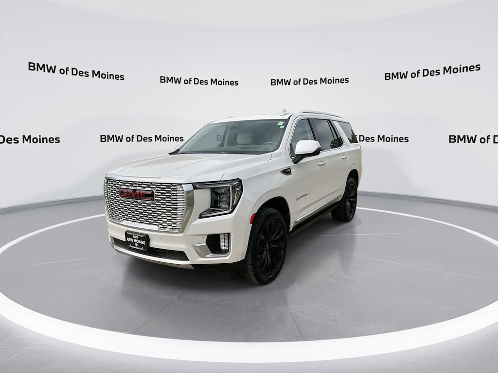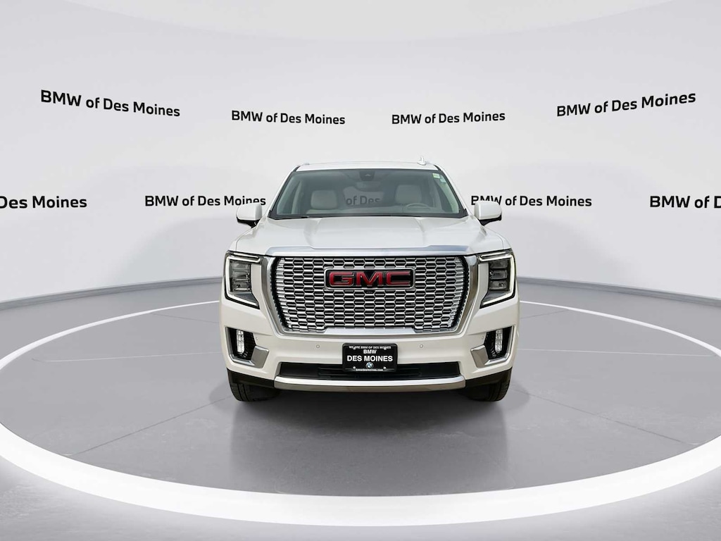 Yukon Denali is nicely equipped with Advanced Security Package (Glass Breakage Sensor, Theft-Deterrent Alarm System, Vehicle Inclination Sensor, and Vehicle Interior Movement Sensor), Advanced Technology Package (Adaptive Cruise Control, Enhanced Automatic Emergency Braking, Inside Rearview Auto-Dimming Rear Camera Mirror, and Rear Camera Mirror Washer), Denali Premium Package (Dual-Pane Panoramic Power Sunroof and Power-Retractable Assist Steps), Illumination Package (LPO) (Illuminated Front GMC Emblem (LPO) and Illuminated Mirror GMC Emblem (LPO)), License Plate Front Mounting Package, Preferred Equipment Group 5SA (12-Way Power Seat Adjusters, 15 Diagonal Multi-Color Head-Up Display, 2 Presets For Outside Rearview Mirrors, 3rd Row 60/40 Power-Folding Split-Bench Seat, Bright Front & Rear Door Sill Plates, Chrome Door Handles w/Body-Color Strip, Dual Exhaust System, Galvano Bodyside Moldings, Hands-Free Power Programmable Rear Liftgate, HD Surround Vision, Heated & Ventilated Driver & Front Passenger Seats, Heated 2nd Row Outboard Position Seats, Heated Automatic Steering Wheel, Heated Driver & Front Passenger Seats, Hill Descent Control, Inside Rear-View Auto-Dimming Mirror, Outside Heated Power-Adjustable Mirrors, Power Release 2nd Row Bucket Seats, Power Tilt & Telescopic Steering Column, Rear Pedestrian Alert, Safety Alert Seat, and Universal Home Remote), 4WD, 14 Speakers, 3.23 Rear Axle Ratio, 3rd row seats: split-bench, 4-Wheel Disc Brakes, ABS brakes, Adaptive suspension, Air Conditioning, Alloy wheels, AM/FM radio: SiriusXM with 360L, Apple CarPlay/Android Auto, Auto High-beam Headlights, Auto-dimming door mirrors, Auto-dimming Rear-View mirror, Auto-leveling suspension, Automatic Emergency Braking, Automatic temperature control, Bodyside moldings, Bose 14-Speaker Surround w/CenterPoint, Brake assist, Bumpers: body-color, Compass, Delay-off headlights, Driver door bin, Driver vanity mirror, Dual front impact airbags, Dual front side impact airbags, Electronic Stability Control, Emergency communication system: OnStar and GMC connected services capable, Floor Console, Following Distance Indicator, Forward Collision Alert, Four wheel independent suspension, Front & Rear Park Assist, Front anti-roll bar, Front Bucket Seats, Front Center Armrest, Front dual zone A/C, Front fog lights, Front Pedestrian Braking, Front reading lights, Fully automatic headlights, Garage door transmitter, HD Radio, Heads-Up Display, Heated door mirrors, Heated front seats, Heated rear seats, Heated steering wheel, Illuminated entry, IntelliBeam Automatic High Beam On/Off, Lane Change Alert w/Side Blind Zone Alert, Lane Keep Assist w/Lane Departure Warning, Leather steering wheel, Low tire pressure warning, Magnetic Ride Control Suspension, Memory seat, Navigation System, Occupant sensing airbag, Outside temperature display, Overhead airbag, Overhead console, Panic alarm, Passenger door bin, Passenger vanity mirror, Perforated Leather Seating Surfaces, Power door mirrors, Power driver seat, Power Liftgate, Power passenger seat, Power steering, Power windows, Radio: AM/FM/SiriusXM w/Navigation, Rain sensing wipers, Rear air conditioning, Rear anti-roll bar, Rear Cross Traffic Alert, Rear reading lights, Rear Seat Media System, Rear window defroster, Rear window wiper, Remote keyless entry, Roof rack: rails only, Security system, SiriusXM w/360L, Speed control, Speed-sensing steering, Split folding rear seat,